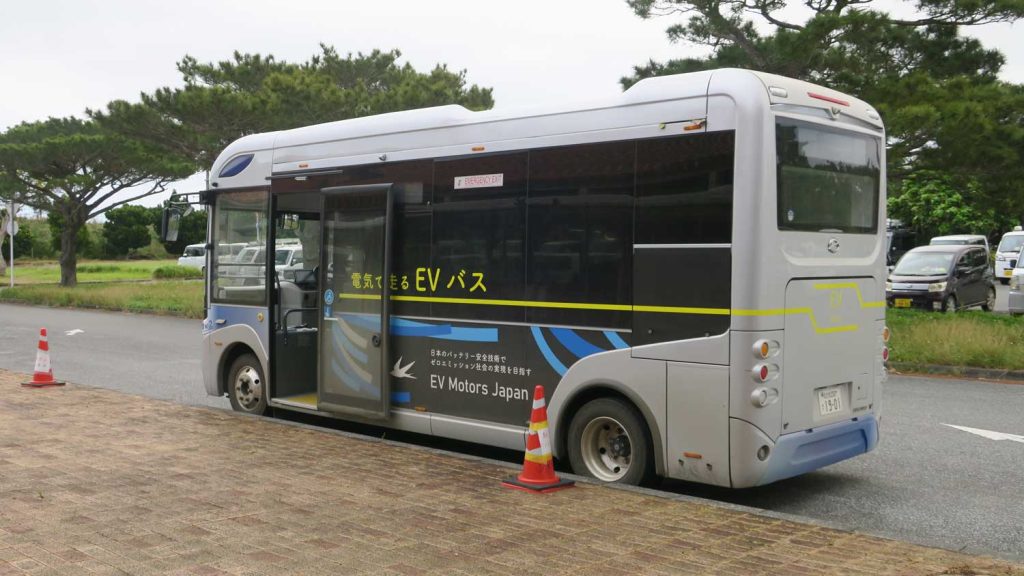 空港で停まっていたバスです。これは有人だと思います。集落内には自動運転のカートが停まる場所がありました。